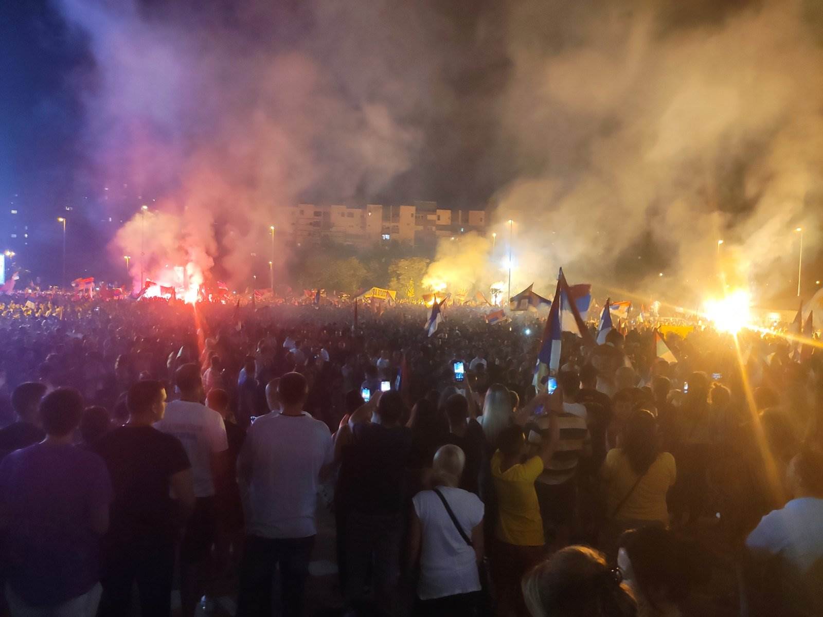 Okupljeni su slavili uz baklje, vatromet i pjesmu.