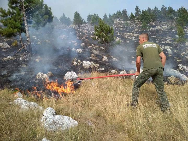 "Riječ je o vrlo nepristupačnom terenu iznad samog kanjona Tare gdje se požar ubrzano širi među borovim stablima zbog osušene trave i niskog rastinja. Otežavajuća okolnost je i ta što se dio livada više ne kosi jer se ranije na takvim mjestima požar uspio izolovati i ugasiti", kazali su iz NPCG.