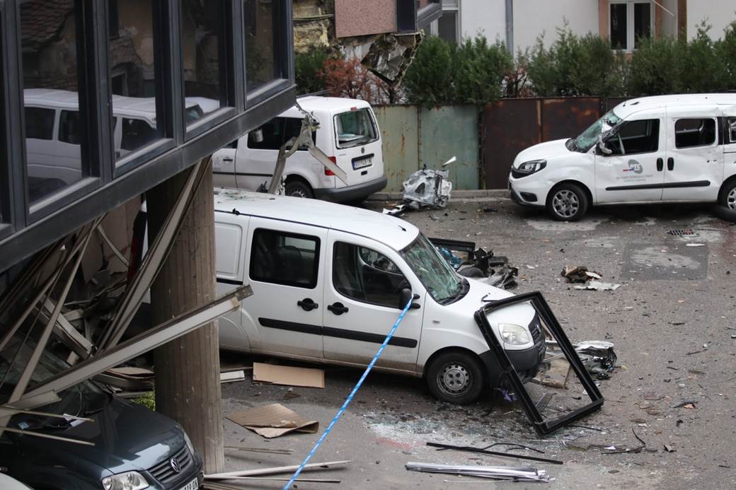 Na licu mesta se moglo videti da je i deo zgrade uništen, a dva automobila koja su se nalazila u blizini skroz su demolirana.