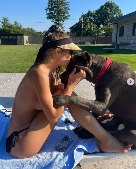 Sonja se slikala toples u dvorištu kuće dok je ljubila svog psa, na sebi je imala samo donji deo bikinija i kačket kako bi se dodatno zaštitila od sunca, a komentari su se samo nizali.