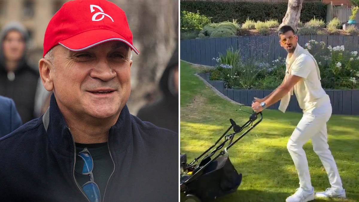 Nole je objavio kratak klip na kom je sa kosilicom, kosi travu i pjeva "Kosi tata, kosim ja, kosili smo obadva" i to u odijelu, sa džemperom preko i naočarima. Snimak je, očekivano, brzo postao viralan.