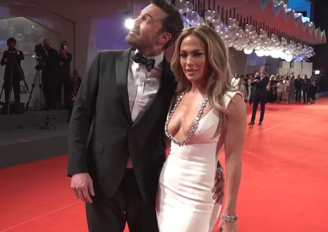 Dženifer Lopez odlučila se za bijelu haljinu ukrašenu kristalima, nalik vjenčanici, dok je Ben nosio elegantno crno odijelo. Lijepa pjevačica se sve vrijeme mučila sa dubokim dekolteom koji "obuzdava" samo niz kristala, pa je pokušavala da ga namjesti dok je Aflek, koji u Veneciji promoviše film "The last duel", bio zaokupljen poziranjem fotografima pa kao da nije ni primijetio.