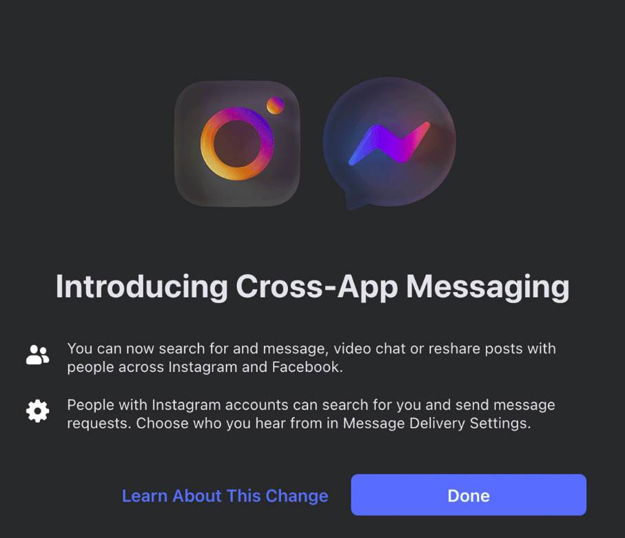 To znači da će Instagram i Messenger biti jedna aplikacija za dopisivanje i sve što pošaljete na Instagram mreži vidjeće se u Messenger-u, koji postaje glavna aplikacija za dopisivanje. Facebook je ovo već najavio i sada je ta integracija, izgleda došla do nas.