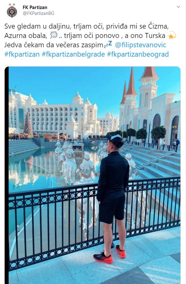 Na fotografiji se vidi Stevanović ispred hotela u Beleku, gdje se Partizan trenutno nalazi na pripremama, a tekst iznad fotografije je ono što je zbunilo navijače, naročito u periodu kada se strani klubovi interesuju za tinejdžera.