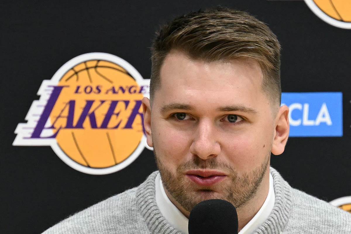 Dončića je na konferenciji za medije u Los Anđelesu predstavio generalni menadžer Lejkersa Rob Pelinka.
