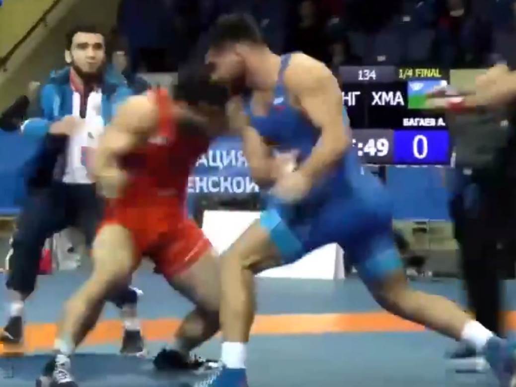 На чемпионате России по вольной борьбе среди юниоров подрались Алан Багаев и Бабули Цолоев — спортсмены из Северной Осетии и Ингушетии. Потасовка между борцами произошла в начале схватки. После соревнований Багаев и Цолоев помирились. Bazapic.twitter.com/YHjvykXO3E